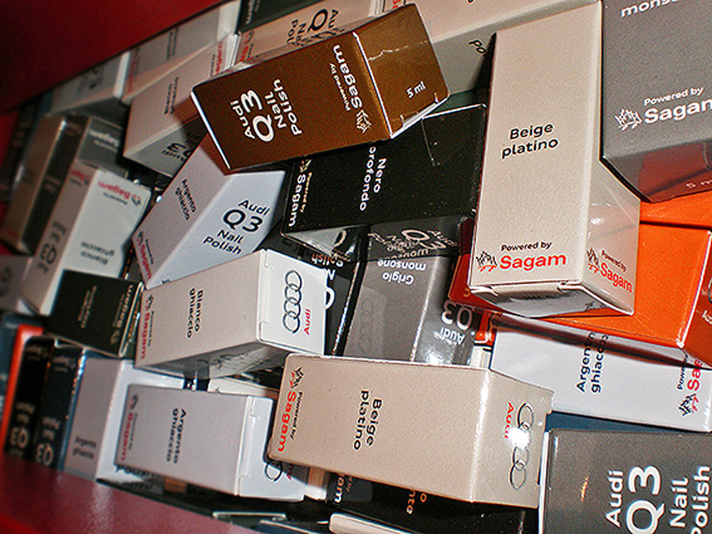 E’ stata prodotta una linea di 12 smalti, uno per ogni colore della gamma Q3, utilizzati nei temporary nail bar allestiti all’interno di alcuni celebri locali milanesi.